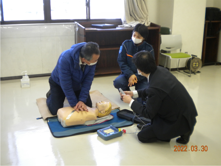 2022年04月04日 一般貸切旅客自動車運送事業 AED訓練・救命救急講習会の実施 令和4年3月30日、31日の両日、日進消防署にて消防署員のご指導のもと、 心肺蘇生、AED取扱い講習に参加しました。 実際にAEDを使用しながら、救急車が到着するまでの約10分間を想定し、様々な場所や 環境に対応した実践方法を学びました。 一覧